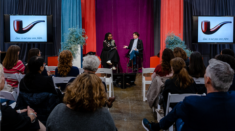 Cecilia Alemani, Giám đốc Nghệ thuật của Triển lãm Nghệ thuật Quốc tế lần thứ 59, đồng thời là Giám đốc & Giám tuyển chính của High Line Art, và Gaëtane Verna, Giám đốc Điều hành, Trung tâm Nghệ thuật Wexner, Đại học Bang Ohio, trong cuộc trò chuyện tại Hội nghị Thượng đỉnh Giám tuyển Nghệ thuật Toronto 2022.
