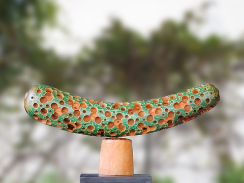 Vẫn thuộc hành trình đi tìm dạng thức biểu đạt, tôi đã công bố những tác phẩm “Mục ruỗng” từ 1 – 5 trong triển lãm Nghệ sĩ trẻ Việt Nam và triển lãm Điêu khắc Hà Nội – Sài Gòn vừa qua. Chúng thuộc series “Mục ruỗng” mà tôi đã làm và đang tiếp tục triển khai. Trong series này, tôi sử dụng kỹ thuật khoan trên chất liệu gỗ để tạo hình tác phẩm. Mỗi tác phẩm được tạo hình với nhiều lỗ khoan to, nhỏ khác nhau, tượng trưng cho dạng thức biểu đạt mới và khái quát những quan sát của tôi từ ký ức đến hiện tại.