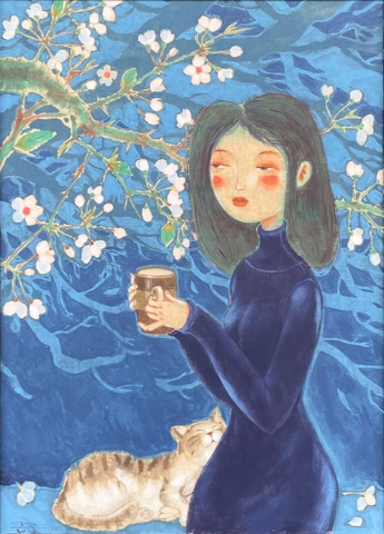 Pham Hoang Ha (1982) was born in Hai Phong and graduated with a bachelor's degree in painting from the University of Arts and Design in 2005. Like many other young local artists, he had to put his passion on hold for years to cater to his livelihood. Ha also has some experience in Hue, producing Ao Dai paintings, which later heavily influenced Hue's literary manner, while consolidating and elevating the marvelous, enigmatic capital. The artist also experimented with various fashions through all polarities of the spectrum. In addition, he once dedicated a series to portray impoverished people via lifelike figures. Eventually, he unburdened his mind by practicing observational paintings of landscapes such that they were afloat. Recently he has been pursuing Do paper and gouache, moving to the opposite spectrum by painting petite girls who bear a hint of ladylike beauty, resembling the romanticism of russian literature. The artist seeks Do paper due to its profuse artistic traits, consistent vintage hue, along with the fresh, elastic, gouache that blooms when dry. Do paper, gouache, portraits of petite ladies, and still lifes are novel sensations that the artist is passionately exploring.