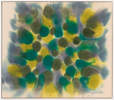 Nhìn vào tác phẩm của Kenneth Young, không có gì ngạc nhiên khi biết rằng hoạ sĩ này đã từng là một nhà khoa học. Ở trường cao học tại Louisiana - với tấm bằng vật lý và bằng kỹ sư hóa học đang chờ đợi - ông gặp nhóm hoạ sĩ Da màu ở địa phương Gallery Enterprise và chuyển ngành. Sau khi tốt nghiệp, ông chuyển đến Washington, D.C. vào những năm 1960 và làm việc trong 35 năm với tư cách là nhà thiết kế triển lãm tại Viện Smithsonian, vẽ tranh trong thời gian rảnh rỗi. Tại không gian của Edward Tyler Nahem, Không tiêu đề (1970) bao gồm các chất lỏng màu xanh lam đục, chanh, xanh ngọc và ô liu, chảy về phía chính giữa của toan vải. Gần giống như một hình ảnh hiển vi của thực hành sinh học, một loạt các chuyển động của tế bào.