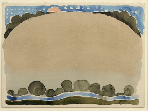 Georgia O’Keeffe, Đồi, Suối và Trăng, 1916–17. Thuộc sở hữu của hoạ sĩ và phòng trưng bày Schoelkopf.