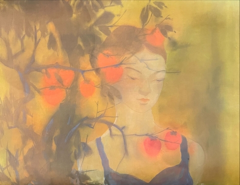 29. Tranh lụa " Thiếu nữ trong vườn"