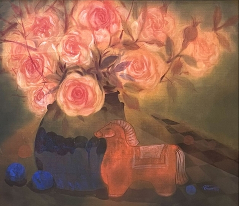 23. Tranh lụa " Tĩnh vật hoa hồng"