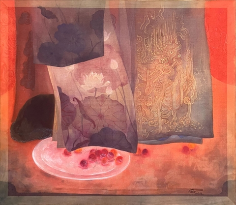 17. Tranh lụa "Tĩnh vật xuân Giáp Thìn"