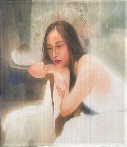 “The painting depicts a model who was posing for others, but I found her image intriguing, so I observed her and took the liberty to incorporate it into my painting." - Nguyễn Văn Trinh