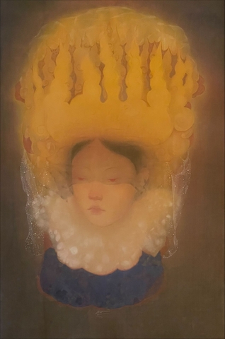 In "Lady in Velvet" Nguyễn Văn Trinh depicts an elegant lady whose striking features instantly captivate the viewers. From the earnest gaze to the petite shoulders and slender hands, the artist pays meticulous attention to detailing the smooth features, conveying the essence of refinement.