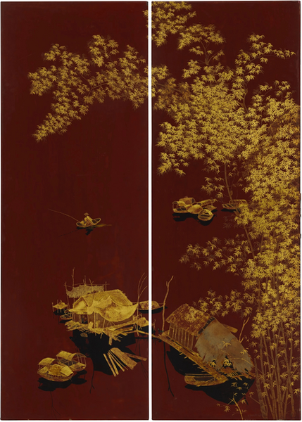 Tác phẩm sơn mài hai tấm không có tiêu đề, kích thước 59x158,5 cm, được ra đời vào năm 1943. Vào tháng 4 năm 2014, bức tranh đã được bán với giá 275.000 đô la Hồng Kông tại buổi "Hội họa Đông Nam Á hiện đại và đương đại" của Sotheby Hồng Kông.